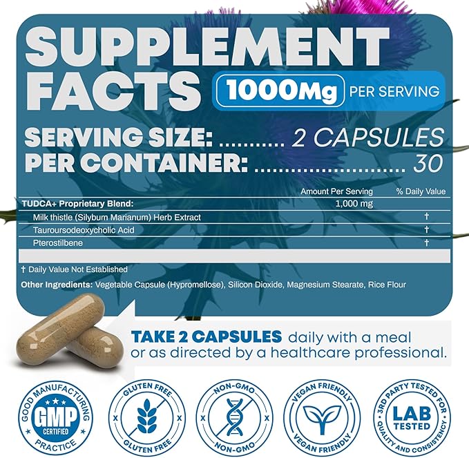 - Optimal Bioavailability: Our advanced formulation ensures optimal bioavailability, allowing for maximum absorption of the 1000mg Tudca+ per serving, providing comprehensive liver support.