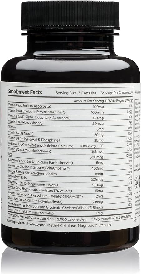 Beli Women Prenatal Multivitamin, for All Stages of Pregnancy, 400mg Choline, Folate, Vitamin D. Supports Egg Quality and Fertility, Gluten & Allergen Free, 90 Vegan Capsules (30-Day Supply)
