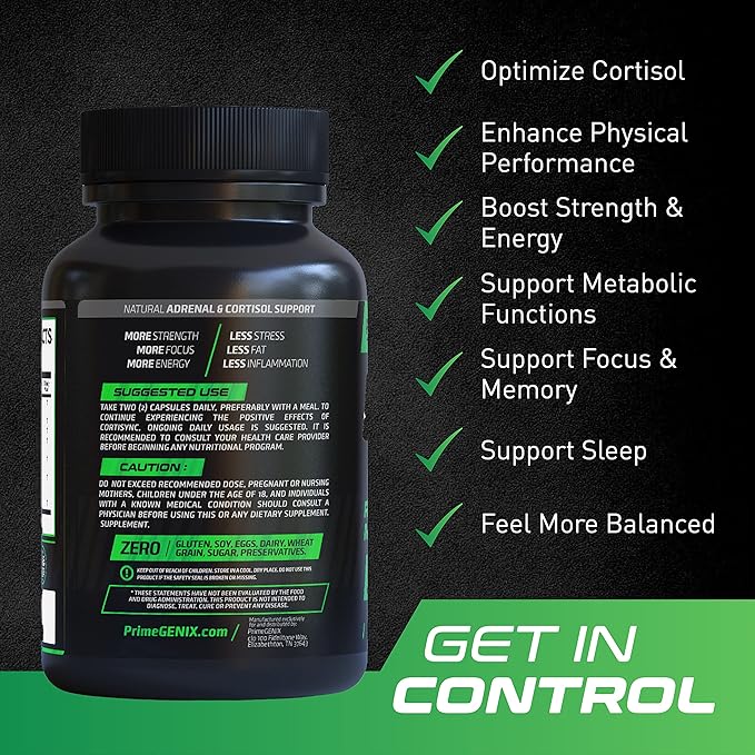- REDUCE AND MANAGE CORTISOL LEVELS - PrimeGENIX CortiSync is a powerful adrenal support supplement that helps support healthy cortisol levels with our top of the line ingredients.