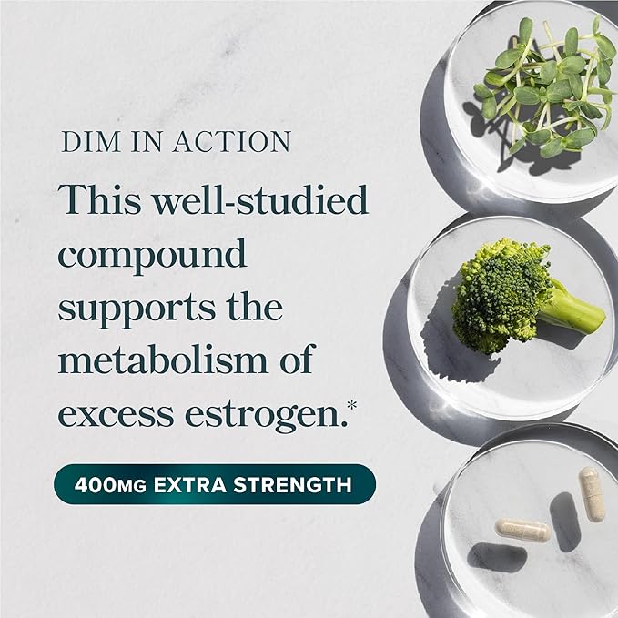 - STRONG ESTROGEN BALANCE FORMULA: DIM (diindolylmethane) is an extract found naturally in cruciferous vegetables, like broccoli and cauliflower. It aids in hormone balance by supporting the body’s natural metabolism of excess estrogen. DIM also provides powerful antioxidants.