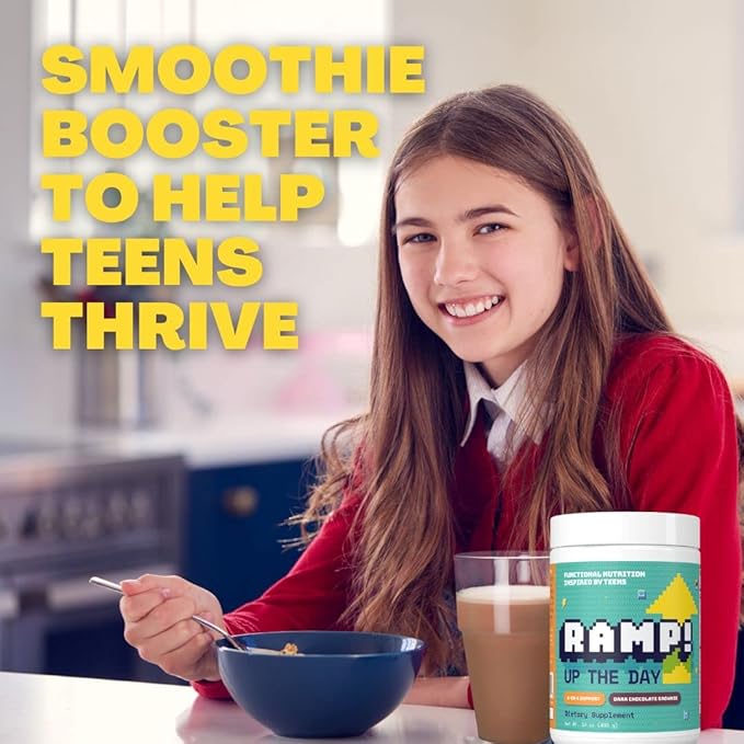 Up The Day | Rich Chocolate Brownie Smoothie-Booster for Ages 10+ | Protein, Fiber, Vitamins for Tweens & Teens | Functional Nutrition to Support Attention, Focus, Mood and Energy | 14oz Tub