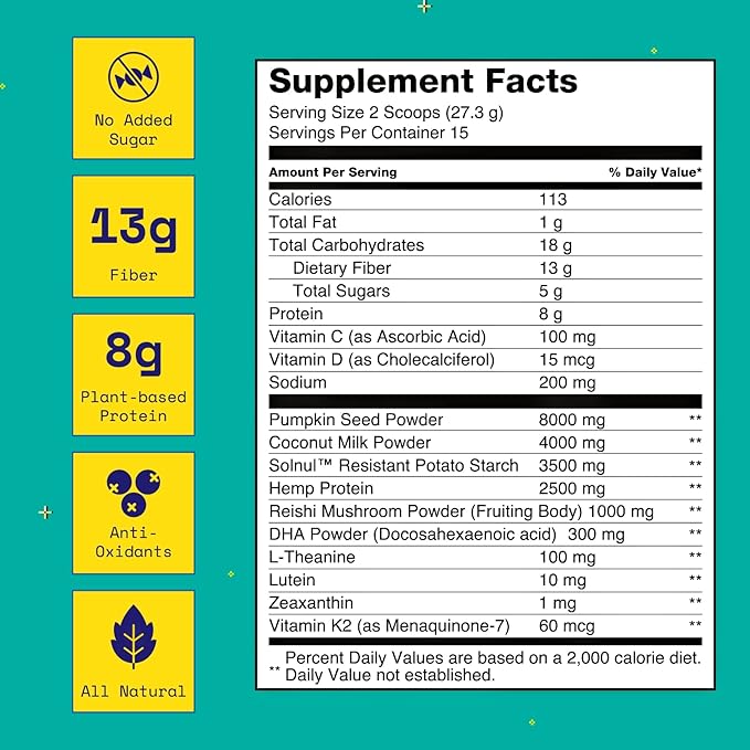 - Special Ingredients : Reishi Mushroom, Vitamin D, Vitamin K, DHA, Prebiotics, Protein, Vitamin C