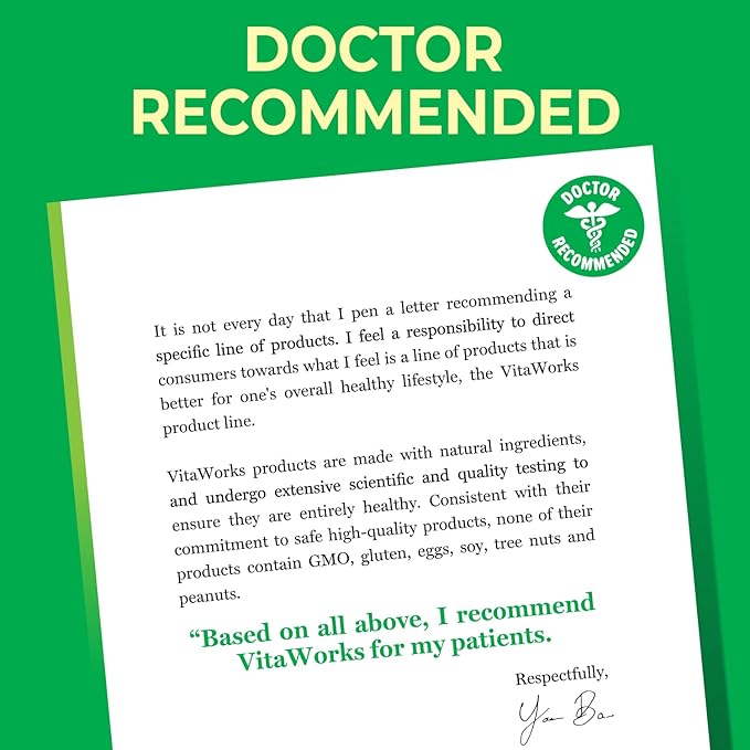 - DOCTOR RECOMMENDED: VitaWorks spares no time researching, testing, and analyzing our products. We go to great lengths to ensure that we deliver the highest quality products possible with top notch ingredients. All of our supplements are backed with the endorsement of an acclaimed family doctor.