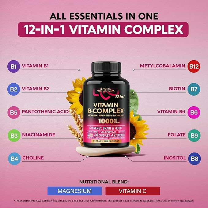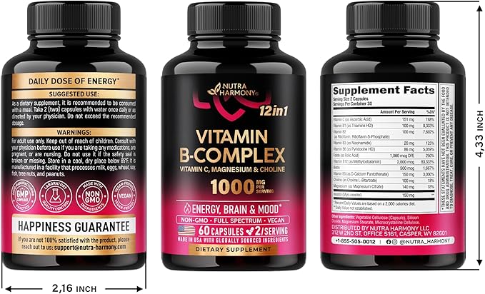 - Made with Care & Love – At NUTRAHARMONY, we desire to provide you with quality and outstanding service. If, for any reason, you are not happy with Vitamin B Complex capsules, just let us know! Drop a message to our support team to share your outstanding experience with B complex vitamins! We care for your well-being!