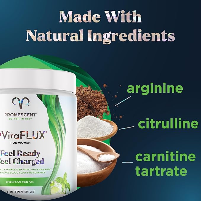 Promescent VitaFLUX Nitric Oxide Booster for Women, Supports Circulation, Energy & Mood, Contains Essential Amino Acids L Arginine 2000mg, L Citrulline 1000mg, L Carnitine 1000mg (30 Servings)