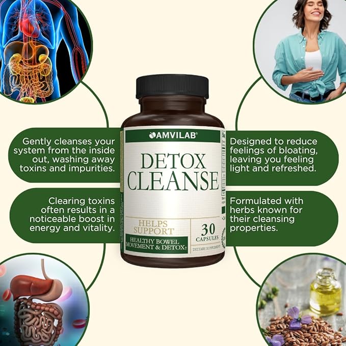 - COLON CLEANSE & DETOX - Amvilab’s Detox Cleanse has a powerful detox formula that supports optimal digestive health, helping you feel lighter and more energized. This supplement gently cleanses your system from the inside out, washing away toxins and impurities.