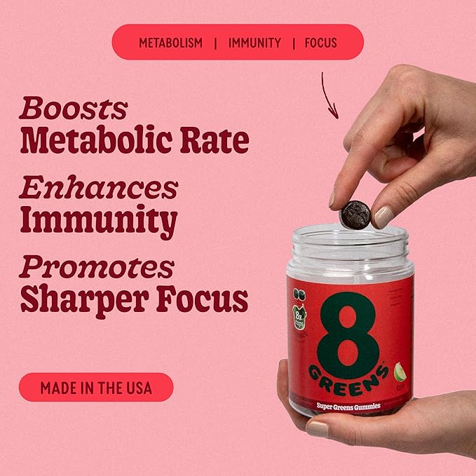 - CONVENIENT FAMILY-FRIENDLY NUTRITION: Perfect for busy lifestyles, 8Greens Gummies are suitable for ages 4 and up, offering a simple, tasty way for the whole family to enjoy daily greens on the go, boosting immunity and digestion without the mess.