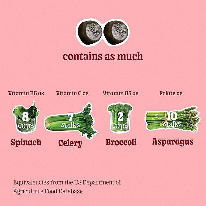 - SUPERCHARGED VITAMINS: Each serving provides Vitamin B6 equal to 8 cups of spinach, Vitamin C like 7 stalks of celery, Folate like 10 asparagus stalks, and Vitamin B5 like 2 cups of broccoli for essential daily nutrients.