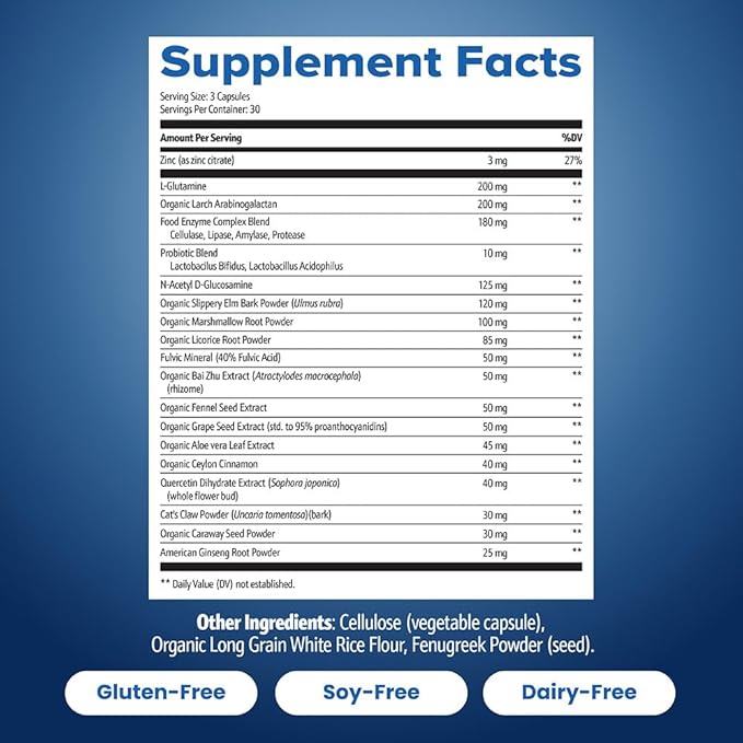 Gut Repair 360: Natural Formulated Formula Emerged from The Lab - Pure Essence Organic Capsules Non-GMO Gluten-Free Soy-Free Dairy-Free USA Made - Supporting Your Healthy Gut