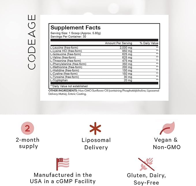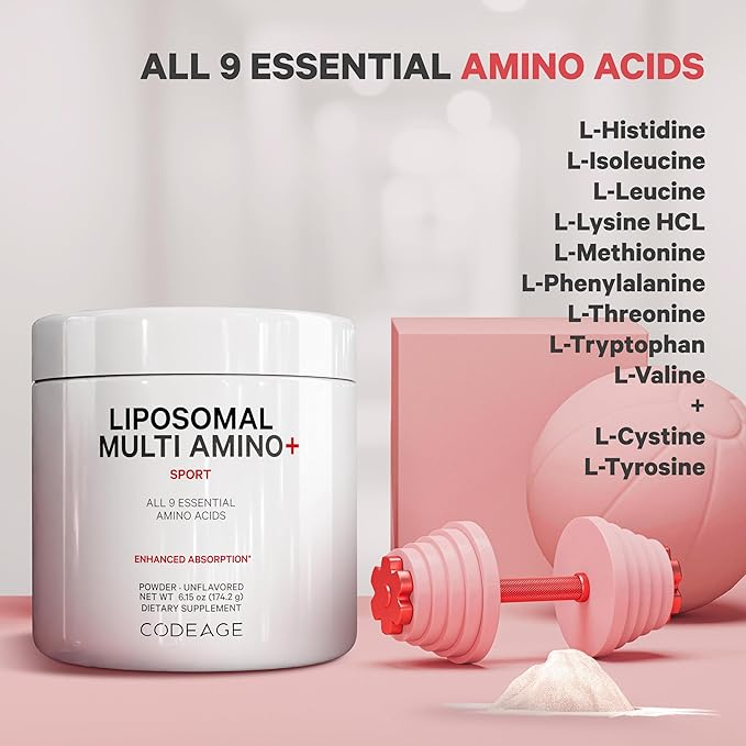 - Codeage Liposomal Multi Amino+ powder supplement is a comprehensive blend that contains all 9 essential amino acids, the building blocks of protein. These amino acids cannot be produced by the body, which is why they need to be obtained through diet or supplementation.