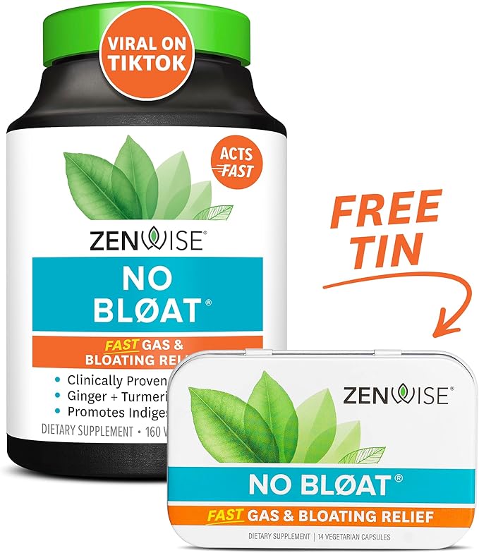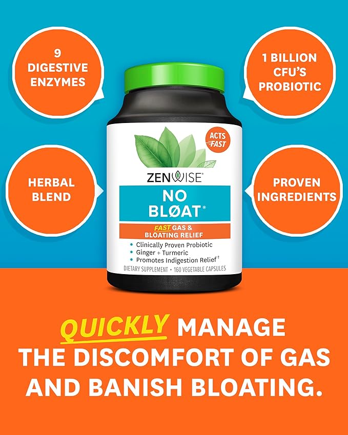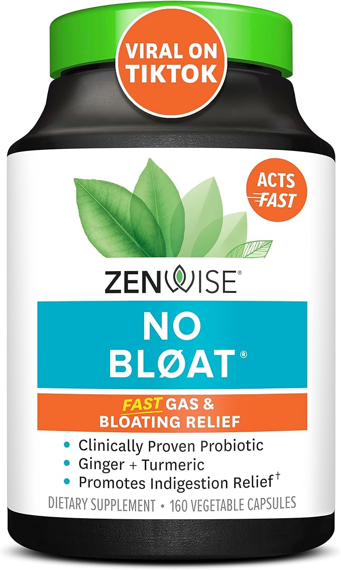Zenwise Health NO Bloat Probiotics for Women and Men Digestive Health with Ginger, Dandelion, and Lactase, Digestive Enzymes for Gas and Bloating Relief - Vegan Water Retention Pills - 160 CT