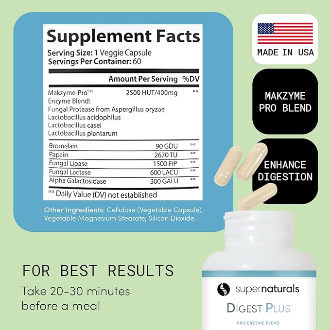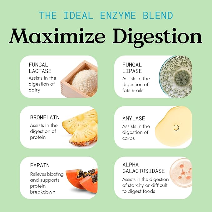- Comprehensive Enzyme Support: Our digestive enzymes formula includes Bromelain, Papain, Lipase, Amylase, Lactase, and Alpha Galactosidase for optimal digestive support
