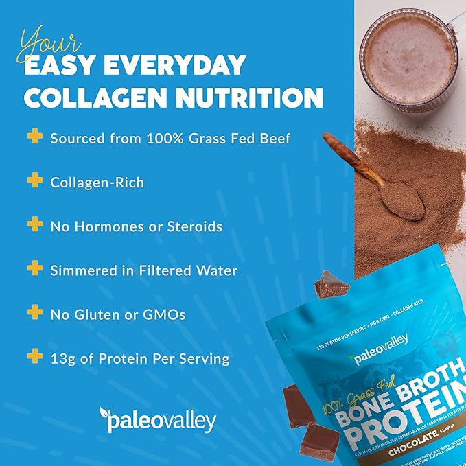 - Chocolatey Way to Enjoy: Your favorite Paleovalley bone broth protein powder is now available in a delicious chocolate flavor. Taste a hint of milk chocolate goodness without the additives and aftertaste. Add to your favorite organic smoothie, a cup of coffee, or any recipe. The possibilities are endless.