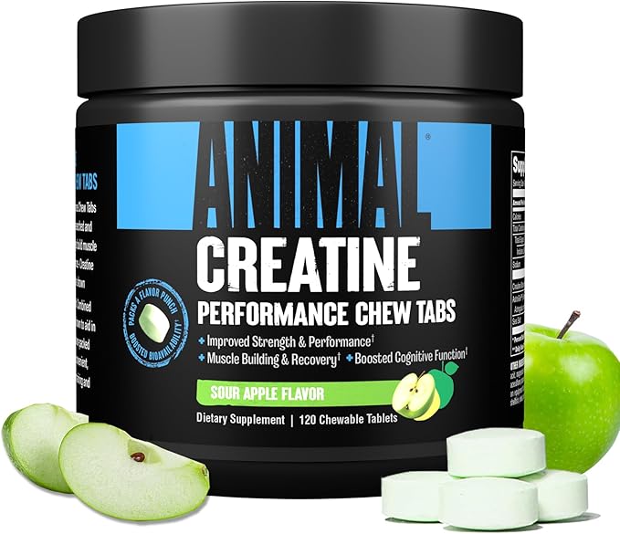 Animal Creatine Chews Tablets - Enhanced Creatine Monohydrate with AstraGin to Improve Absorption, Sea Salt for Added Pumps, Delicious and Convenient Chewable Tablets - Green Apple