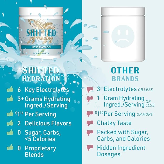 - NEXT GENERATION HYDRATION: SHIFTED Hydration is a high-performance premium electrolyte supplement designed to maximize your body’s ability to stay well hydrated in sweaty situations. Whether you’re an athlete in the gym, recovering from illness, spending long days out in the heat, or even looking to bounce back from a night out, SHIFTED hydration multiplier is here to help you feel– and be– your best.