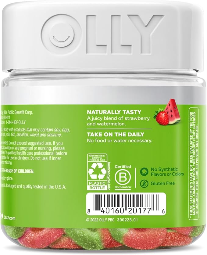 OLLY Fiber Gummy Rings, 5g Prebiotic Fiber, FOS (Fructo-oligosaccharides), Digestive Support, Berry Melon 50ct