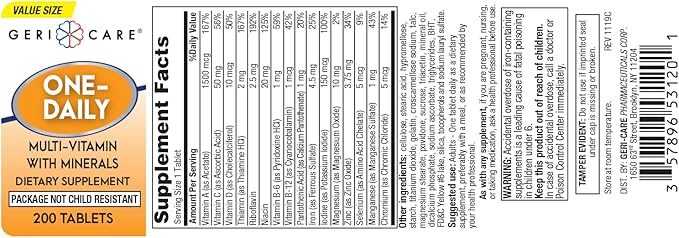 GeriCare One-Daily Multi-Vitamin & Minerals, Dietary Suplement Tablets (200 Count (Pack of 1))