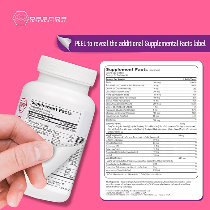 Orenda Womens Multivitamin- Holistic Wellness for Women | with O-Harmony Blend, Dong Quai, Black Cohosh, and More! | Vitamins, Minerals, Hormonal Balance, Immune Support & Heart Health - 90 Tablets