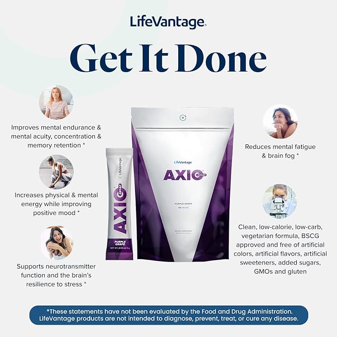 - Begin taking AXIO powder drink mix and support your overall cognitive health. This energy supplement improves mental endurance, concentration, and memory retention. For a healthier mind!