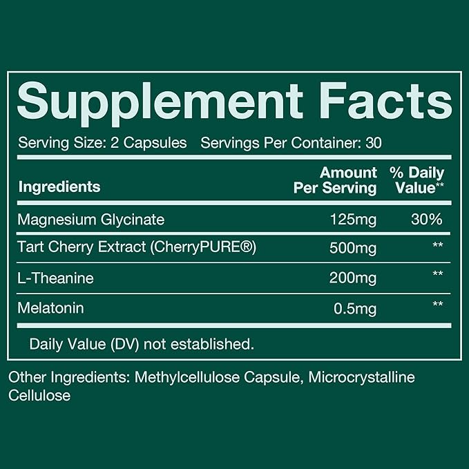 - Four Ingredients, Optimal Sleep - Our Sleep Support Complex is backed by science and research, is non-GMO, gluten-free, and offers you the best possible formulations featuring Melatonin, Tart Cherry, L-Theanine & Magnesium Glycinate.