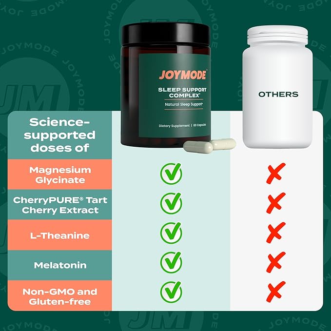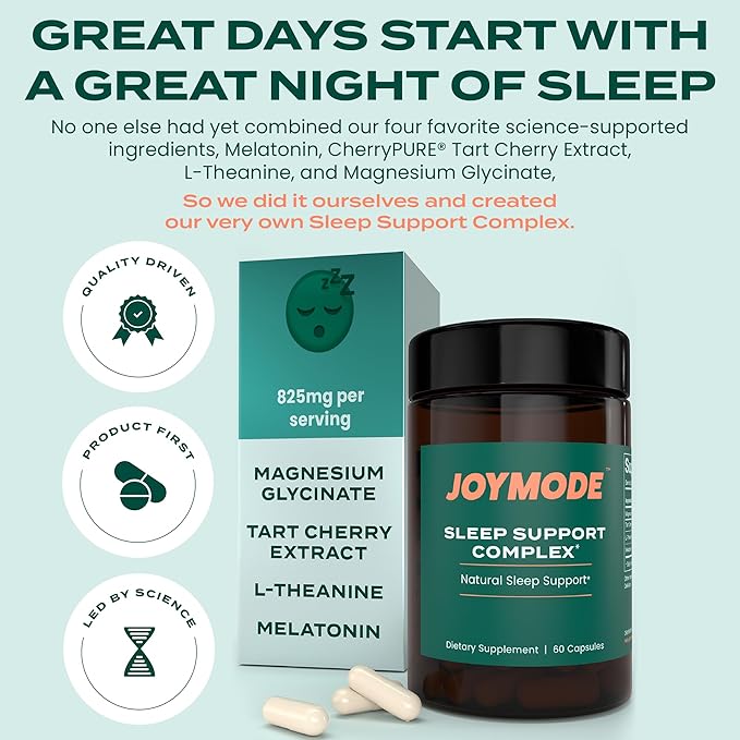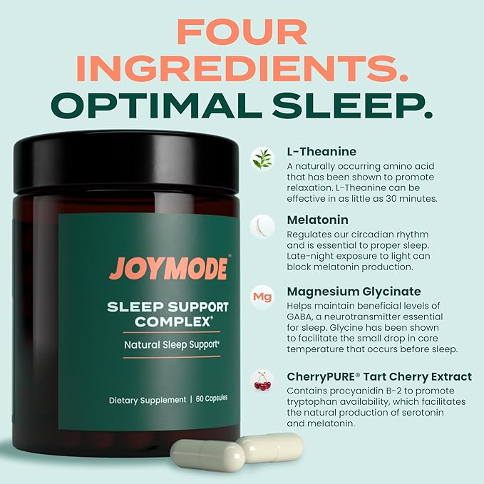 JOYMODE Sleep Aid Supplement for Adults (60 ct) with L Theanine, Melatonin & 125mg Magnesium Glycinate, 500mg Tart Cherry Extract from CherryPURE for Sleep Support