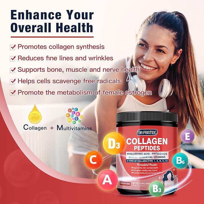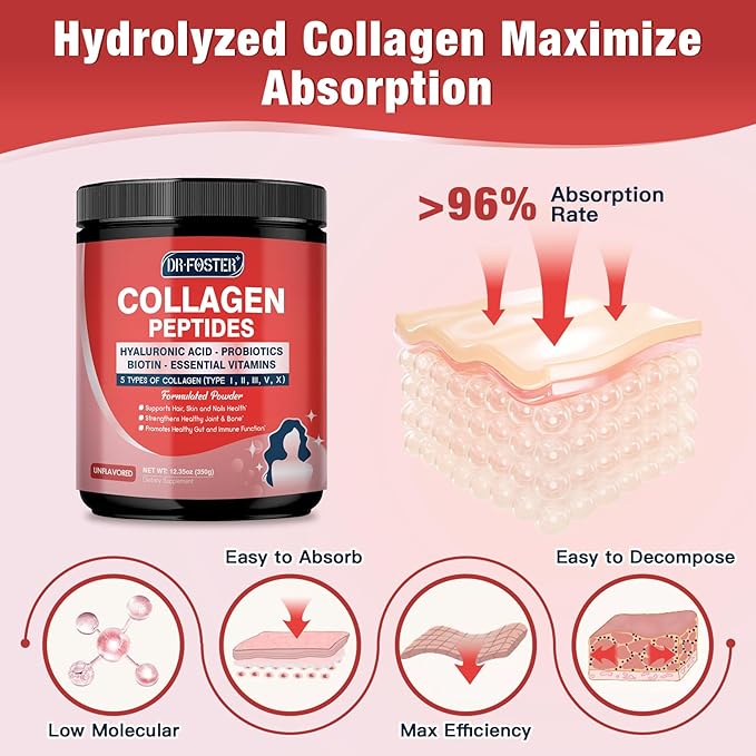 - Advanced Formula for Optimal Absorption - Our Hydrolyzed Collagen Peptides are a particular type of protein that breaks down into smaller peptides. Therefore, taking collagen with a multivitamin can help your body absorb more of the nutrient. DRFOSTER Multi Collagen Powder provides a variety of essential vitamins to help improve your immune system, increase your energy levels, and support your overall sense of wellbeing.