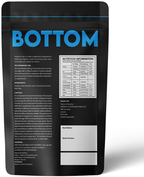 - 🌱 ONLY 3 PLANT-BASED INGREDIENTS: BOTTOM by Friend of Dorothy is a blend of flaxseed, psyllium husk, and aloe vera. Flaxseed deliver Omega-3 fatty acids, antioxidants, and fiber, while psyllium husk supports digestive health. Aloe vera reduces gut inflammation, ensuring a soothing elimination process. Embrace confidence and well-being with our clean and effective formulation.
