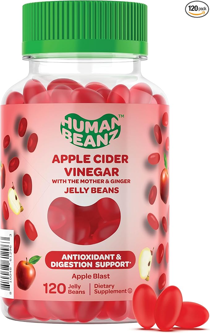 - APPLE CIDER VINEGAR + GINGER JELLY BEANS FOR ADULTS Our Apple Cider Vinegar Jelly Beans for Adults are an easy and enjoyable addition to your nutrition routine, with a delicious Apple Blast flavor and unique chewable jelly bean texture. A healthy dose of apple cider vinegar every day can be the key to better, healthier lifestyle!