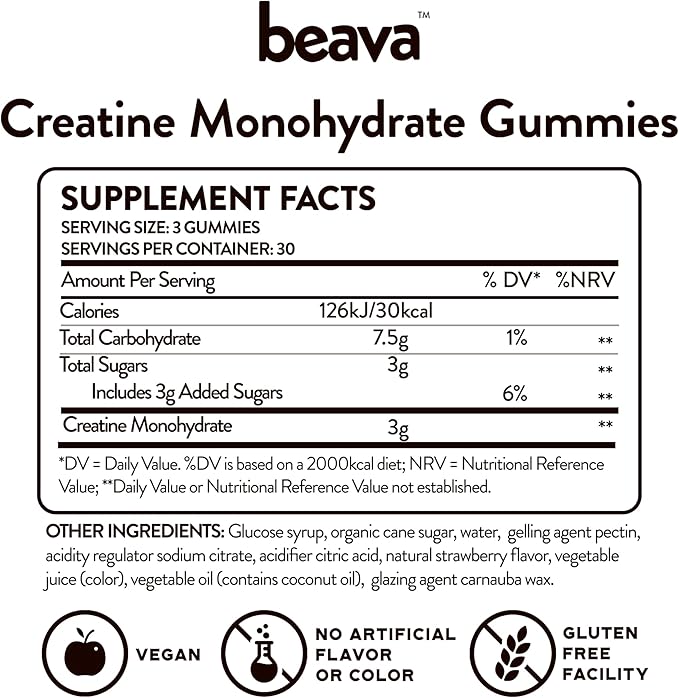- Quality You Can Trust: Our Chewable Creatine Gummies are Vegan and gluten-free with Natural Strawberry flavor. No Artificial flavors or colors.