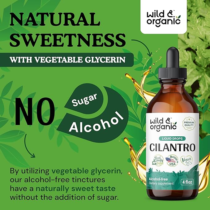 - Alcohol-Free: Wild & Organic cilantro drops are vegetable glycerin-based, providing an alcohol-free tincture that is easy on digestion.