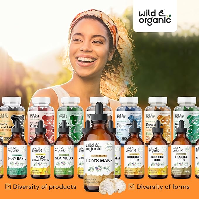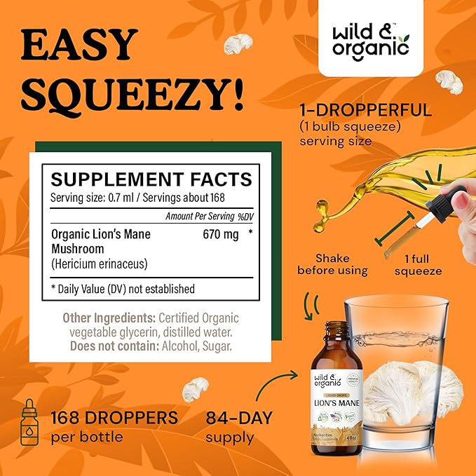 - 84-Day Supply: Each 4 fl. oz. bottle of Wild & Organic lion's mane drops contains 168 servings per bottle, providing an 84-day supply when taken two times per day.