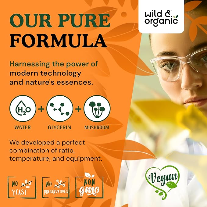 - Alcohol-Free: Wild & Organic mushroom tincture with lions mane powder is vegetable glycerin-based, providing an alcohol-free tincture that is easy on digestion.
