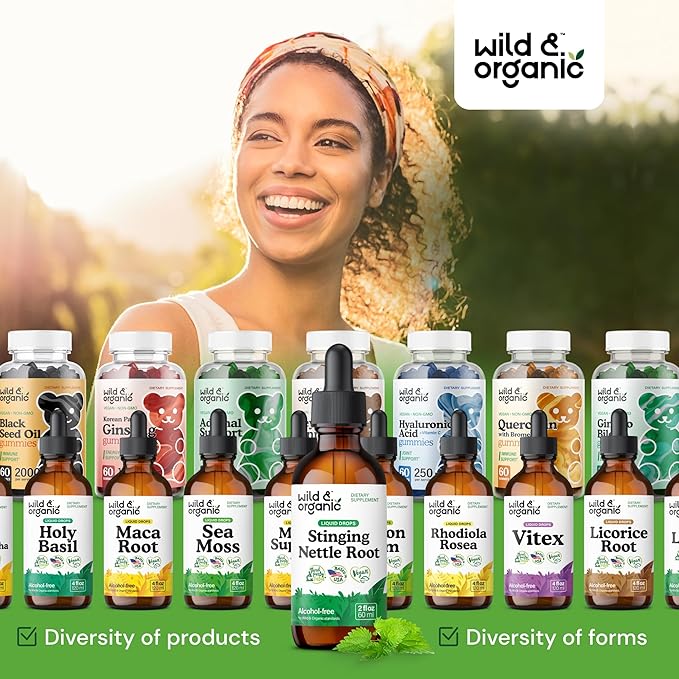 - Sweetness Without Sugar: Enjoy a pleasant supplement experience with Wild & Organic stinging nettle extract, which features a naturally sweet taste. Our nettle root liquid uses glycerin for natural sweetness, with no added sugar.