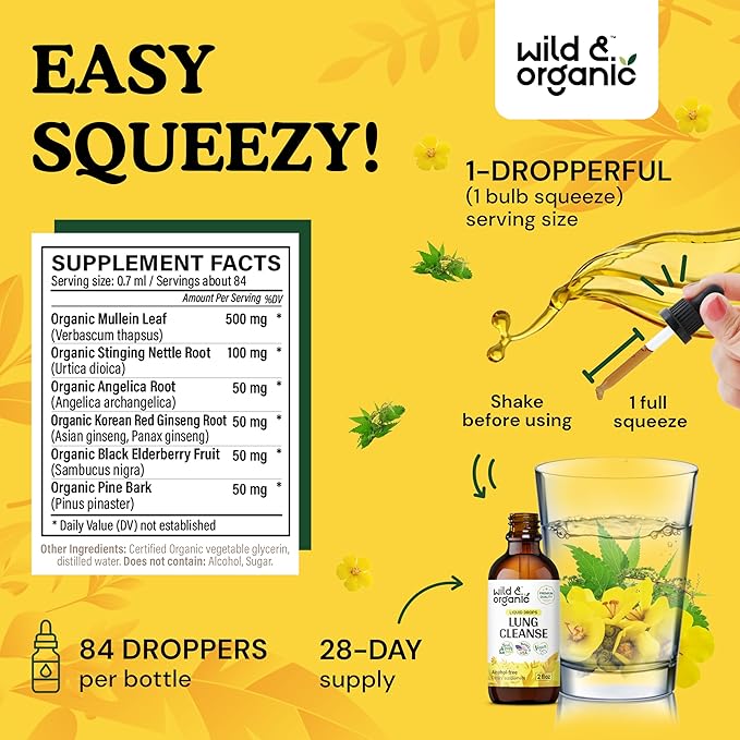 - Lung Cleanse Support: Each serving of Wild & Organic lung cleanse drops contains 500 mg of mullein leaf extract for lungs for cleanse and detox.