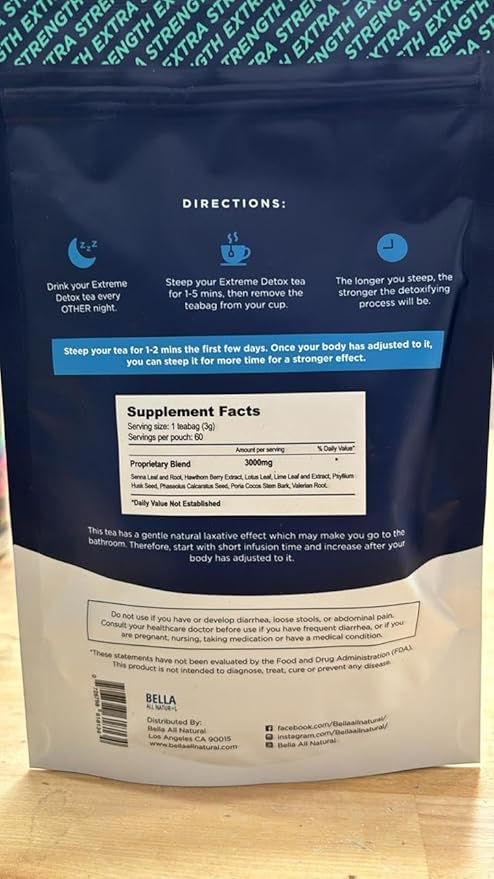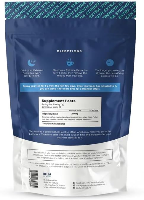 Bella All Natural Extreme Detox Tea - Body Cleanse, Colon Cleanser & Detox, Natural Herbs, 3.17 Ounce
