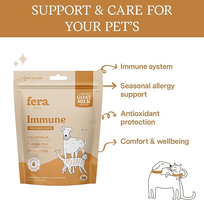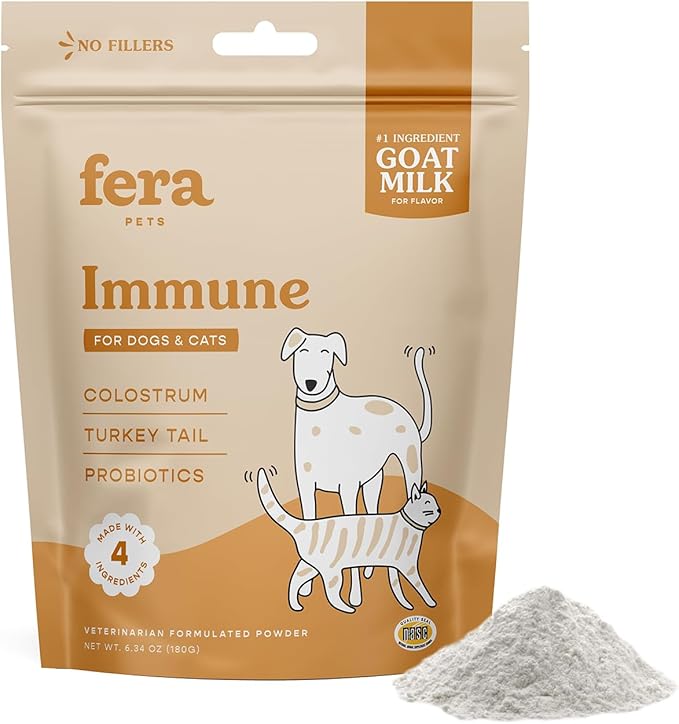 Fera Pet Organics Immune Goat Milk Cat & Dog Food Topper – Vet Created - Pet Allergy & Immunity Aid – Probiotic - Colostrum & Turkey Tail Mushroom-60 Servings