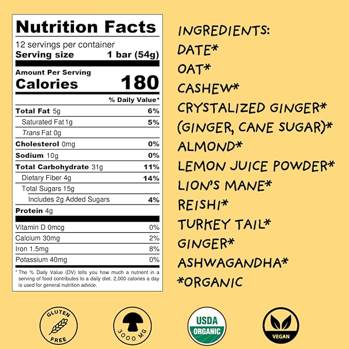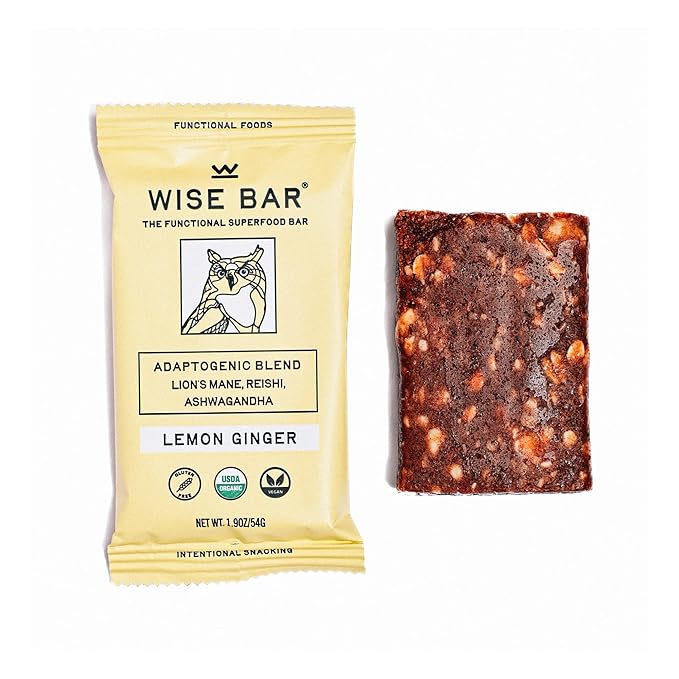 - Adaptogens for Energy, Focus, and Immunity: Elevate your day with Wise Bar's powerful blend of Lion’s Mane, Reishi, and Ashwagandha. Our bars deliver nearly double the industry standard for adaptogens—providing jitter-free energy, exceptional taste, and ultimate convenience.