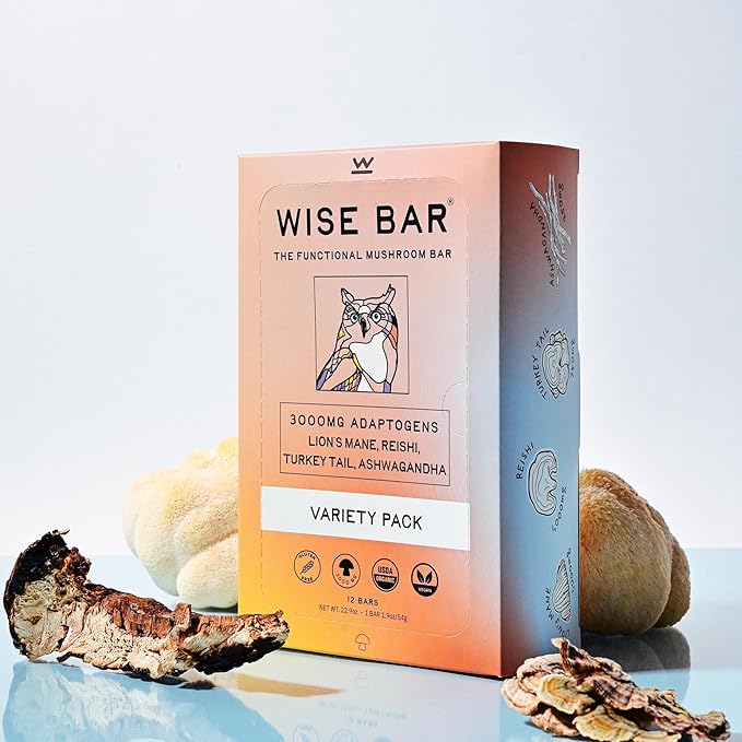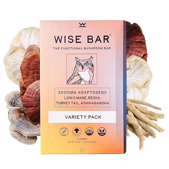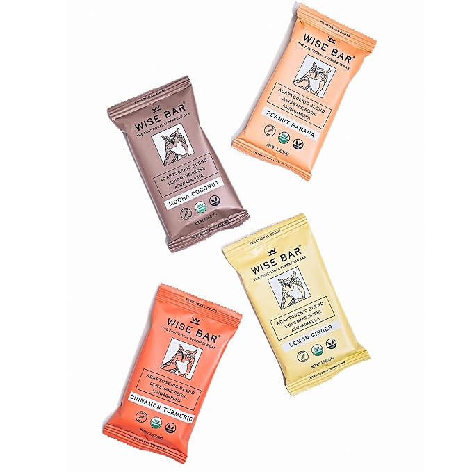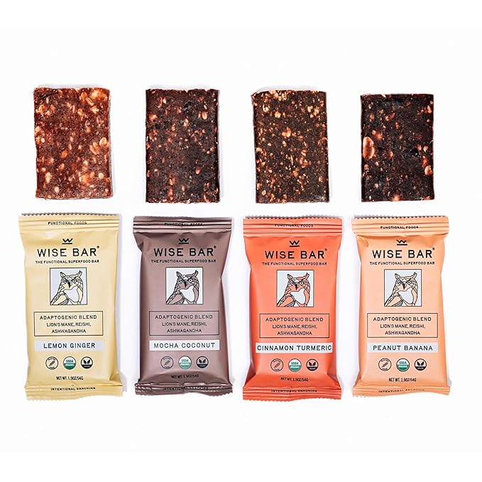 - Adaptogens for Energy, Focus, and Immunity: Elevate your day with Wise Bar's powerful blend of Lion’s Mane, Reishi, and Ashwagandha. Our bars deliver nearly double the industry standard for adaptogens—providing jitter-free energy, exceptional taste, and ultimate convenience.