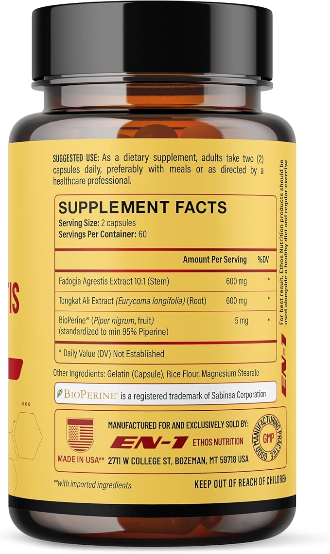 - MADE IN USA: EN-1 supplements are manufactured in a GMP certified USA facility. Fadogia Agrestis and Tongkat Ali supplement is rigorously tested by 3rd party labs to ensure maximum purity and precise potency.
