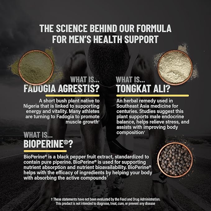- PROPER DOSAGE WITH POTENT EXTRACTS: Optimize your health with tongkat Ali for men paired with fadogia agrestis for men. Two highly effective ingredients enhanced with BioPerine for maximum bioavailability.