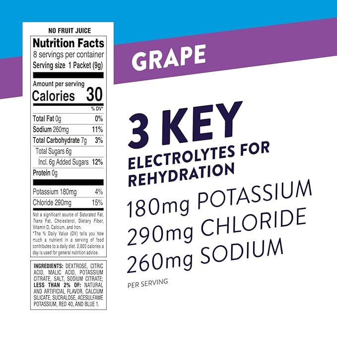 Pedialyte Fast Hydration Electrolyte Powder Packets, Grape, Hydration Drink, 24 Single-Serving Powder Packets