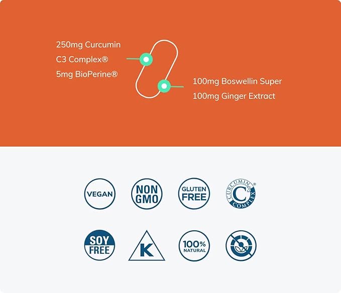 - Synergistic Formula for Maximum Joint and Inflammation Support: Curcumin Plus features a powerful combination of patented Curcumin C3 Complex (Turmeric), Boswellin Super (Frankincense), BioPerine (Black Pepper Extract), and Ginger. This carefully curated blend works synergistically to provide enhanced anti-inflammatory, antioxidant, and joint support benefits. Together, these ingredients are designed to help relieve discomfort, promote flexibility, and maintain overall joint health.