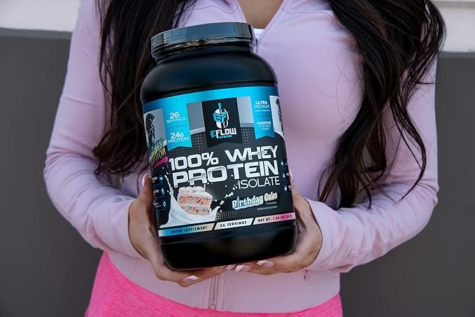 eFlow Nutrition 100% Whey Protein Isolate - Lactose-Free Digestive Enzymes Added, Low Carb, Post Workout Shake, Fast Digesting for Optimal Muscle Recovery - Birthday Cake (26 Servings)