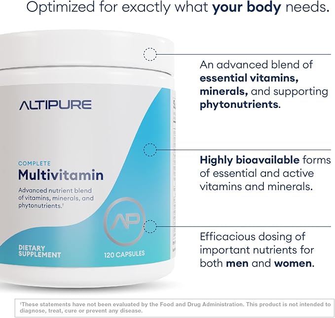 - Comprehensive health support: Altipure’s complete multivitamin for men and women provides advanced blend of vitamins, minerals, and phytonutrients to support brain, heart, immune, skin, bone, and eye health.