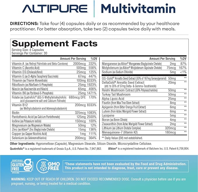ALTIPURE™ Complete Multivitamin, Gluten-Free, Dairy-Free, Heart, Bone, Eye and Brain Health, Immune Function, 120 Capsules