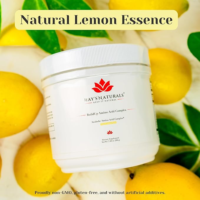 Hay's Naturals BuildUp - Advanced Amino Acid Complex | BCAA Powder with All Essential Amino Acids for Lean Muscle Growth, Enhanced Strength & Recovery | 30 Servings |Natural Lemon Flavoring