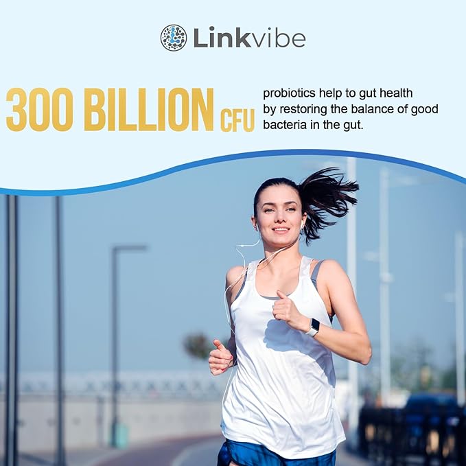 - 300 Billion CFU Probiotic Supplement: Our Linkvibe Probiotics are suitable for women and men. Powerful probiotics contain a diverse range of probiotics and prebiotics. From 12 different probiotics strains digestive health and gut health. With 300 billion CFUs of probiotics per serving, a complete probiotic for women & men