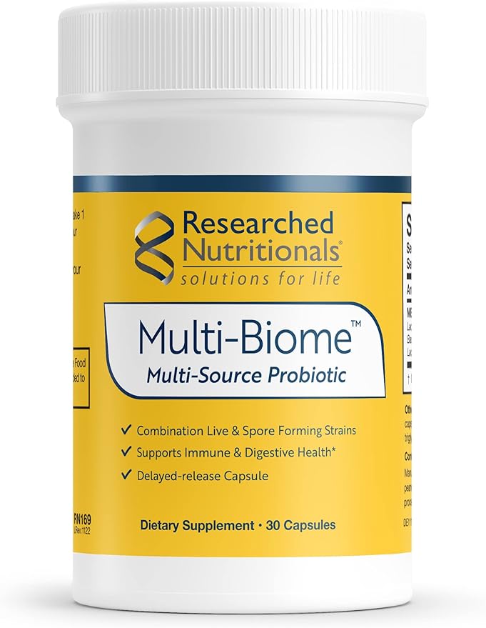 Researched Nutritionals Probiotics for Digestive Health - Multi-Biome - Spore Based Probiotics & Live Probiotics for Gut Health & Immune Support + Healthy Histamine & Cytokine Activity (30 Capsules)