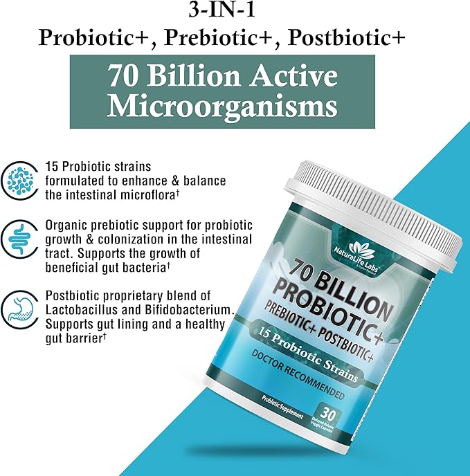 - ✔️3-IN-1 70 Billion Probiotic+, Prebiotic+, Postbiotic+. Carefully formulated by experts
