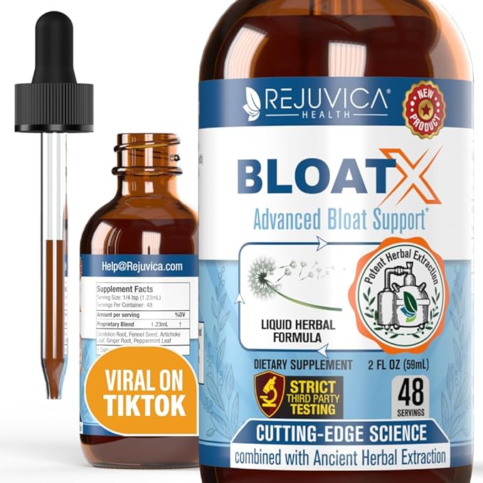 Rejuvica Health BloatX- Advanced Bloating Support Supplement - Liquid Delivery for Better Absorption - Fennel, Dandelion, Artichoke, Ginger & More!
